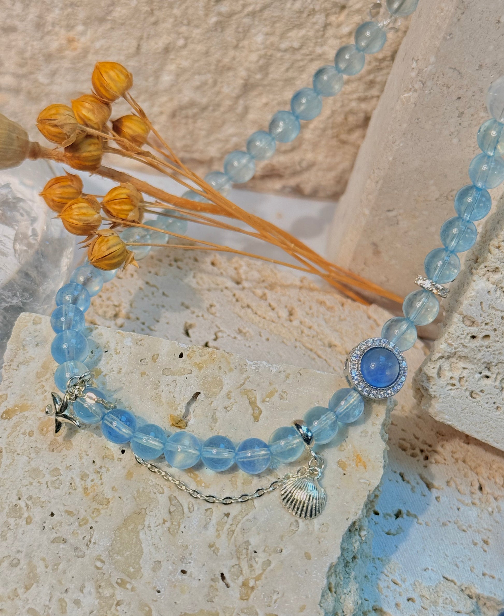 Together, they create a bracelet that embodies both tranquility and sophistication.