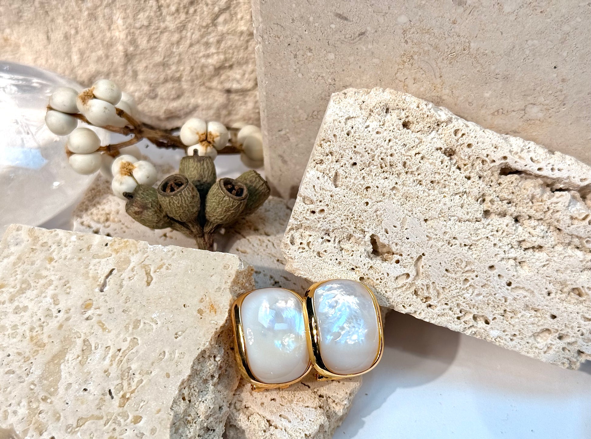 Mother-of-Pearl has long been admired for its natural iridescent glow and symbolic connection to purity, harmony, and timeless beauty. These earrings bring that soft elegance into your everyday style.